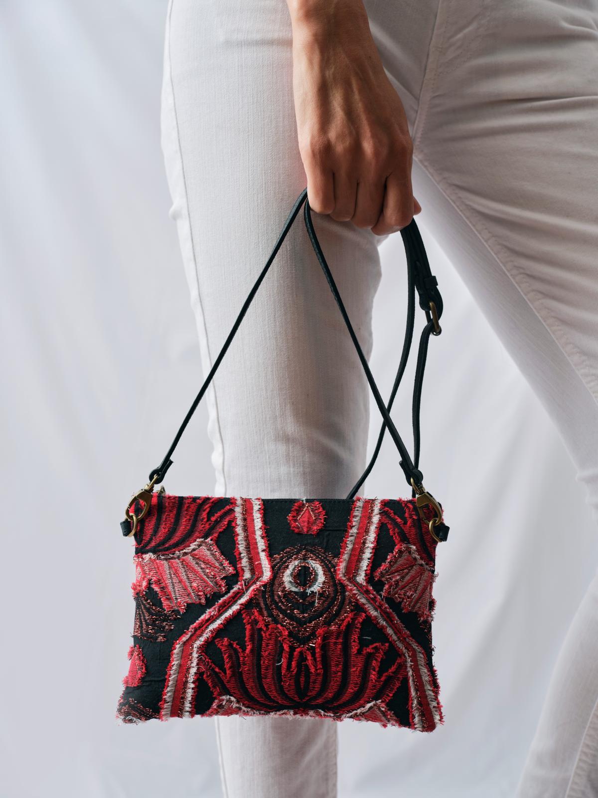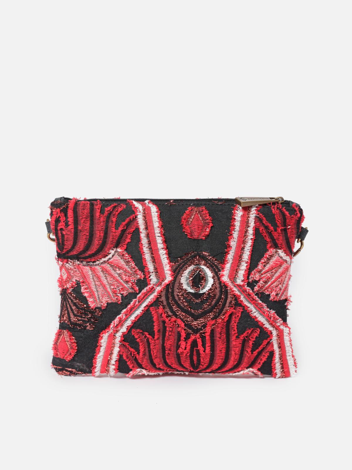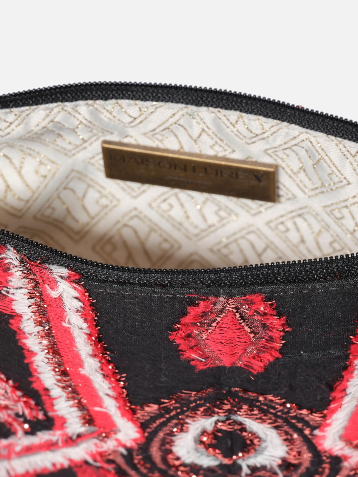 Cette pochette raffinée est réalisée dans un tissu précieux Lurex® exclusif. Elle se porte à la main ou en bandoulière pour habiller n'importe quel look.