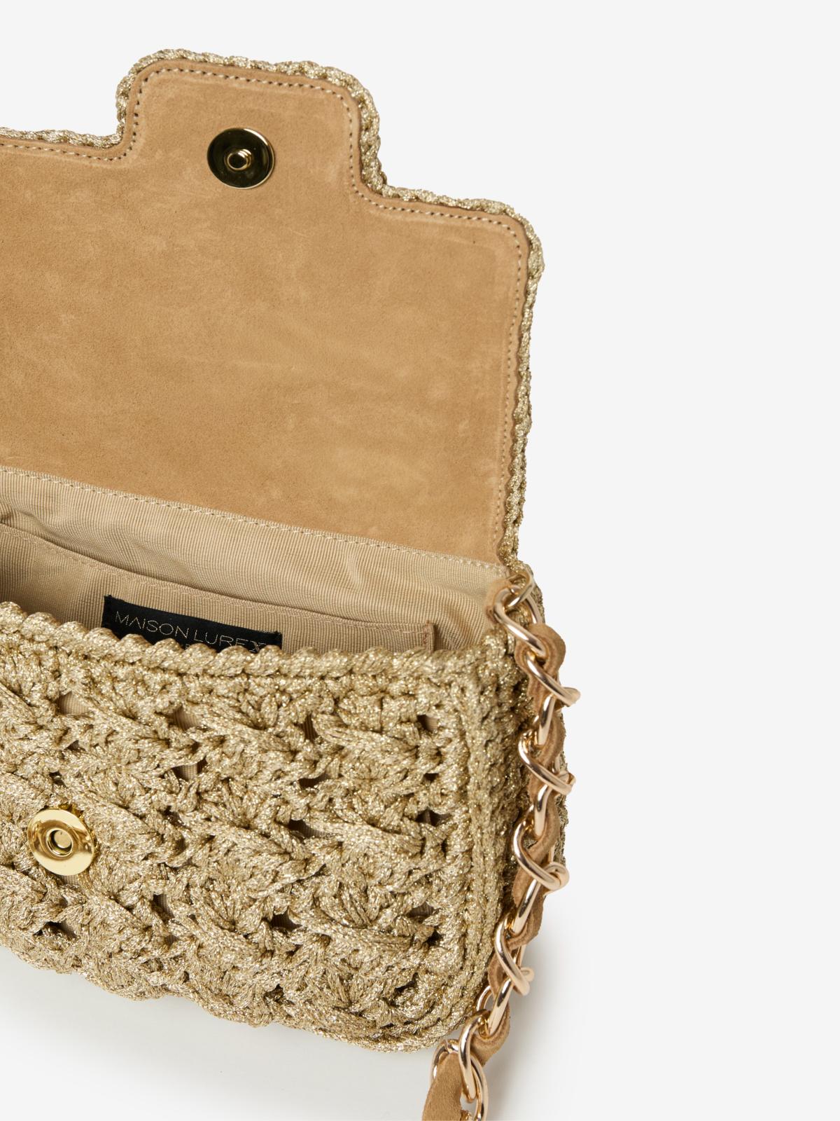 Sac à main à porter en bandoulière, crocheté à la main en Italie avec nos fils Lurex®. Il est la version carré de notre sac Fenice.
